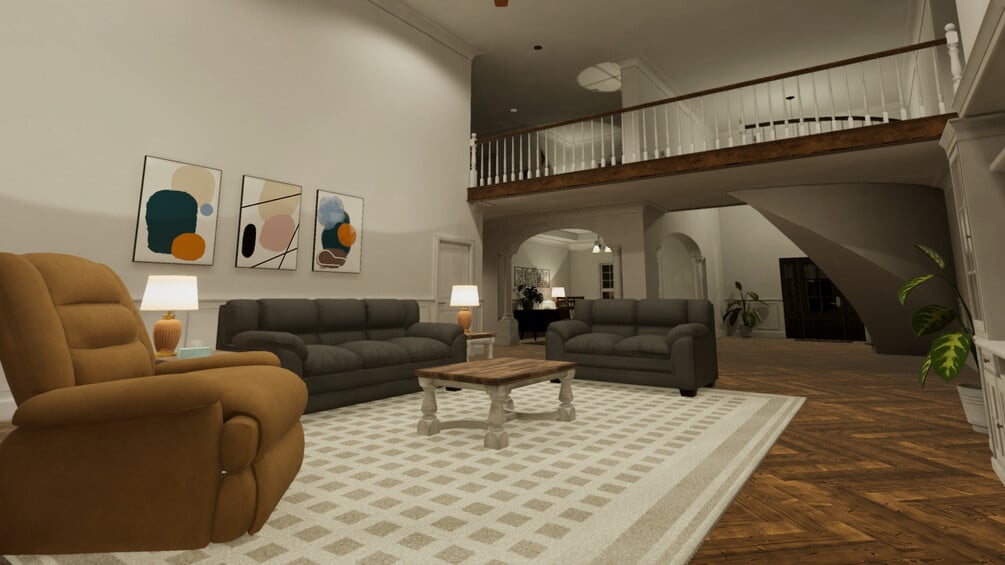 The McMansion is a three story, 6 bedroom, 4 and a half bath lake house. Based on the Mansions found in American Suburban neighborhoods. Built from scratch, this world uses over 220 prefab assets. Props and furniture prefabs make is easy to customize the world. Move props around and add more props to the scene easily.